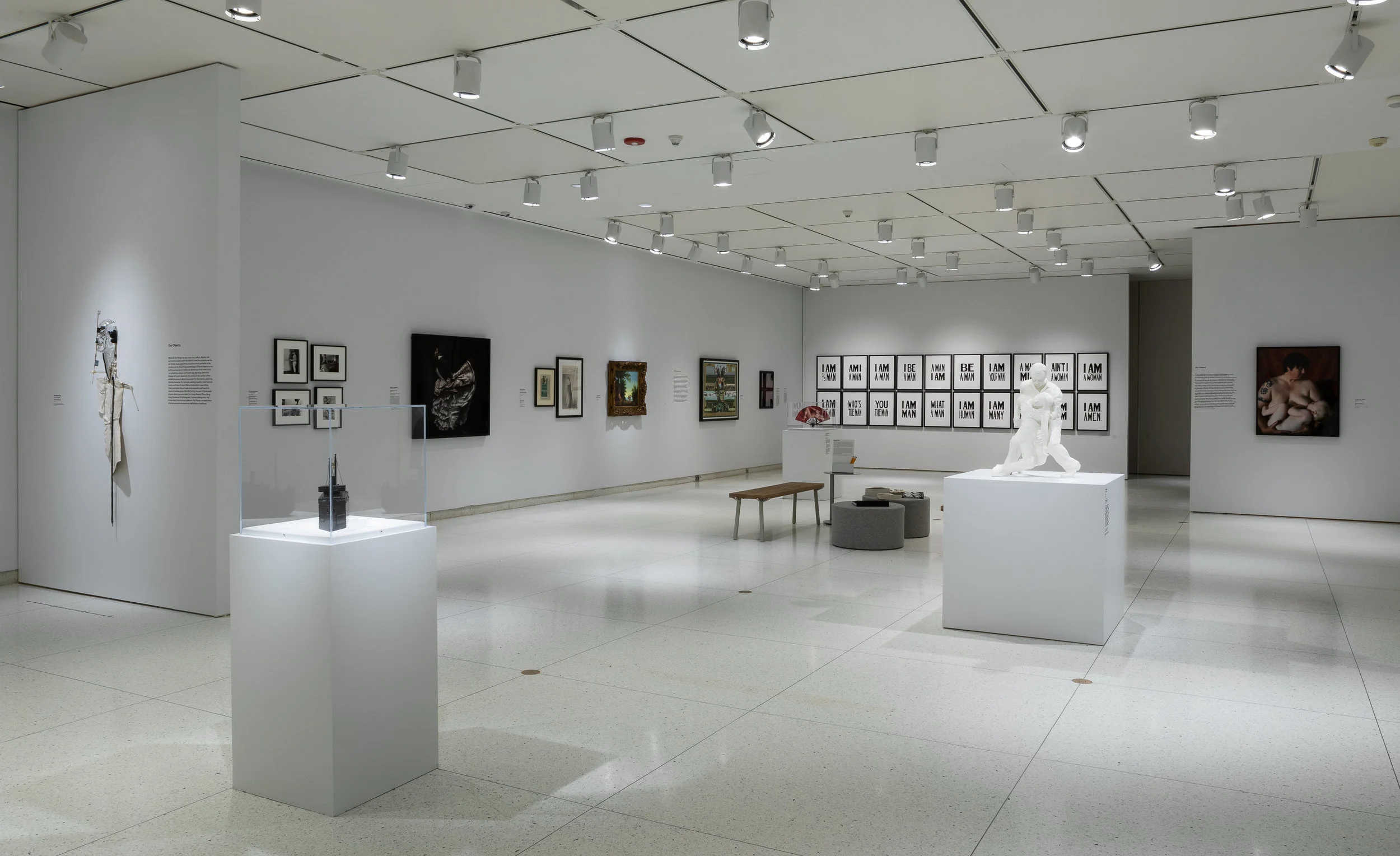 Embodying the Self continues this capacious approach to the array of perspectives in the Common Core curriculum, including more manifold international and contemporary voices. The “Self, Culture, and Society” course sequence is perhaps the ideal place for Smart to the Core to begin, as the readings explore theories and themes from the fields of psychology, sociology, gender and sexuality studies, postcolonial studies, and race studies, asking questions about identity and self-representation. In the gallery, a range of artworks by modern and contemporary artists offers thoughtful meditations on notions of self hood, whether through self-portraiture, abstraction, or the juxtaposition of imagery with critical textual commentary.