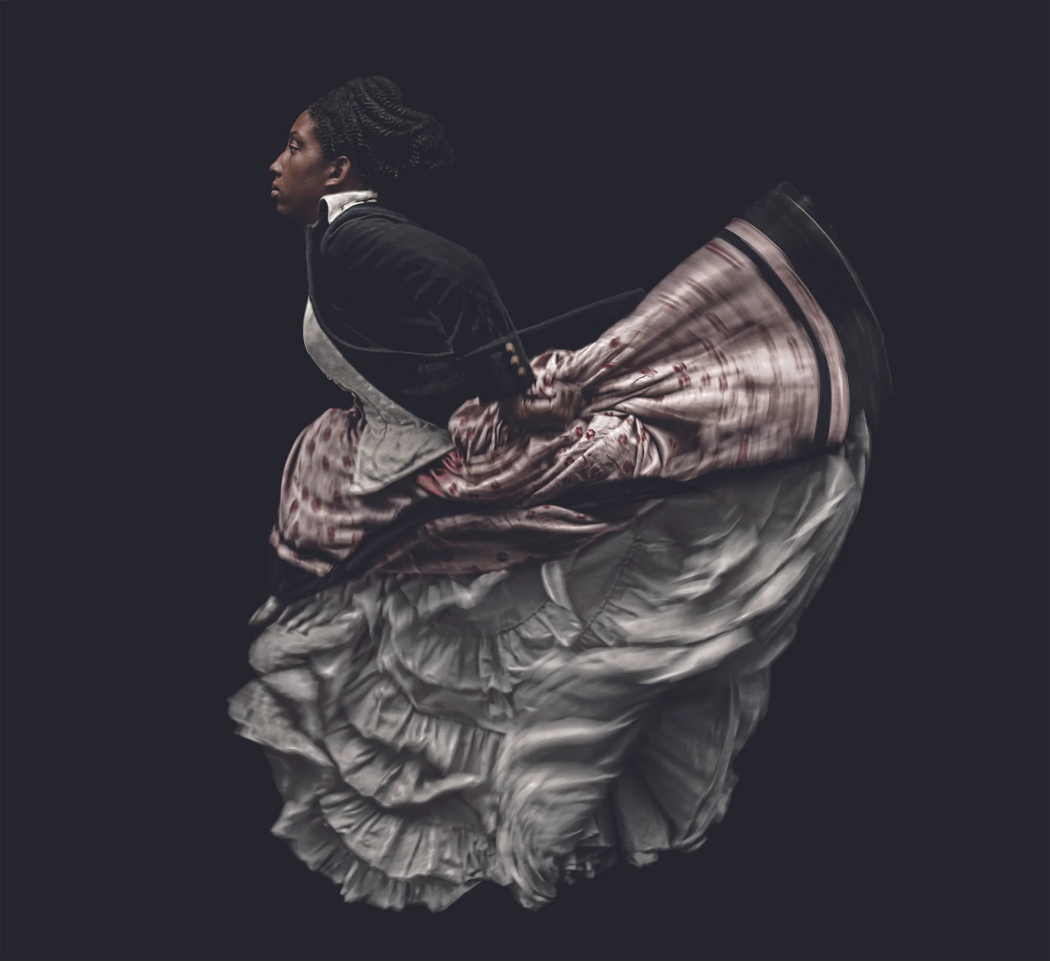 Some artists repossess their stolen rights to self-representation. Ayana V. Jackson’s near life-size 2016 self-portrait, Laboring Under the Sign of the Future, shows the artist dancing in front of her camera, seemingly defying gravity. Dressed in nineteenth-century clothing, Jackson sets out to revise notions of black female identity inherited from Antebellum America. While grappling with the historical legacy of constraint, Jackson also imagines “that there must have been these stolen moments in which you could find ways within your bondage to be free.” Her exuberant steps and swirling skirts dispute simplistic representations of black women as bodies unceasingly under the emotional weight of labor and abuse.