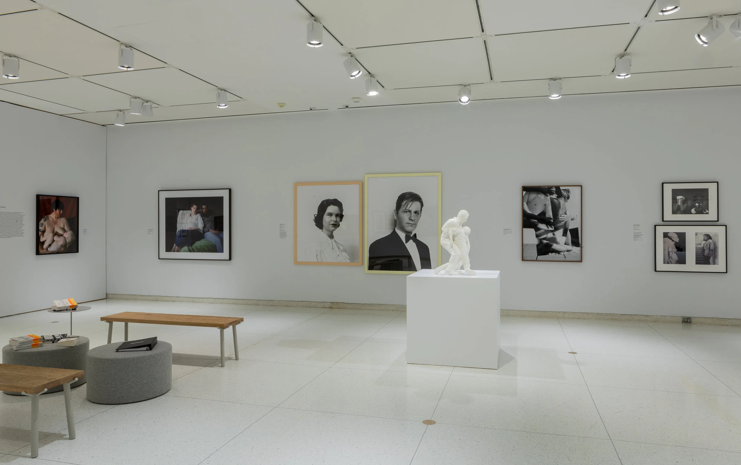 Fittingly, the Common Core is also quite literally at the center of the exhibition. A reading station with a selection of texts by authors including Sigmund Freud, Simone de Beauvoir, Michel Foucault, Judith Butler, and Kwame Anthony Appiah—all drawn from the “Self, Culture, and Society” syllabi—sits in the middle of the gallery. Here, viewers can become students, and perhaps form their own connections to both the ideas on the page and those on the walls.